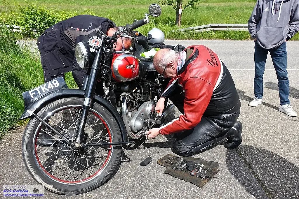 Vor der Abfahrt zum Ariel-Treffen in der Eifel wurden noch einige Kleinigkeiten erledigt.