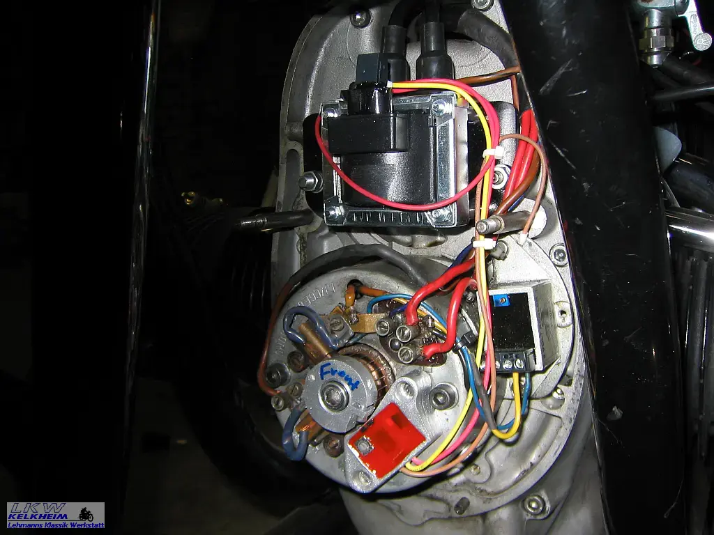 Nachdem ich gesehen habe, wie der Zündzeitpunkt wackelt, habe ich der R50/2 eine elektronische Zündung spendiert. Der Umbau ist etwas aufwendiger, da von Magnetzündung umgerüstet wird.