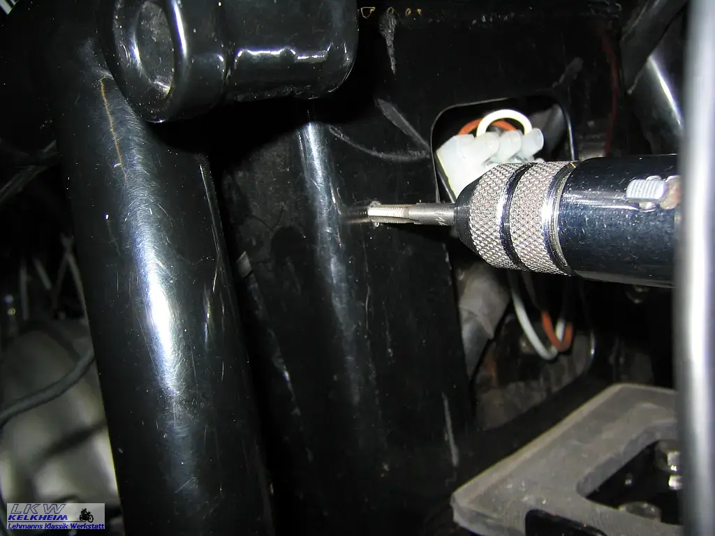 Getriebeöl wurde nachgefüllt und der Bremszug geölt. Das Zündfunkenbild ist perfekt und eine Vergasereinstellung war nicht nötig. Ein Wackelkontakt des Standlichts wurde noch beseitigt.