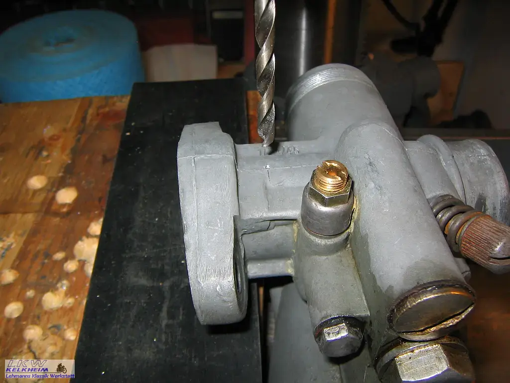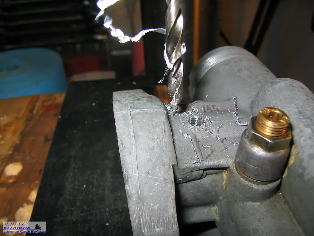 Hier kann ich bei Bedarf einen Schlauchstutzen einschrauben und mein Differenzdruckmessgerät anschließen. Damit lassen sich die Vergaser endlich sehr gut synchronisieren.