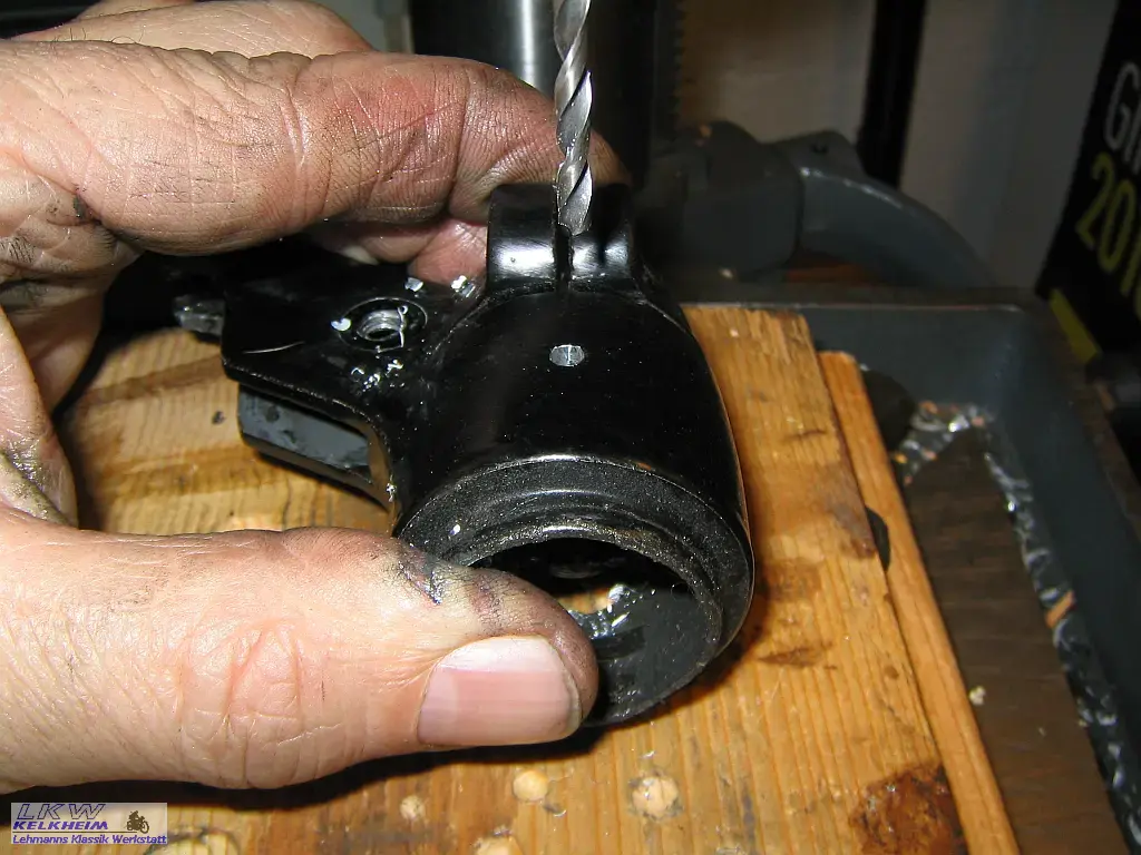 Der Blinkerschalter war etwas zu tief montiert. Also habe ich neue Löcher gebohrt und mit passenden Gewinden versehen, um den Schalter höher anschrauben zu können.