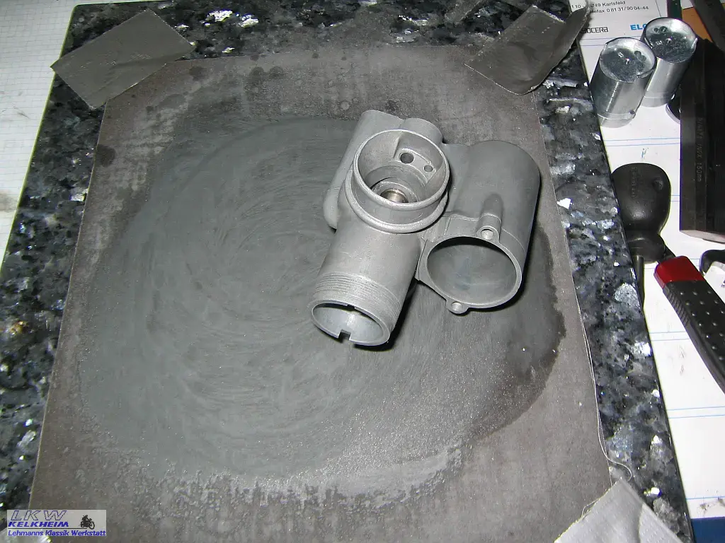 Die Vergaser wurden mit Ultraschall gereinigt und die Flansche planiert. Das Ganze wurde mit neuen Dichtungen und Düsen wieder zusammengebaut.