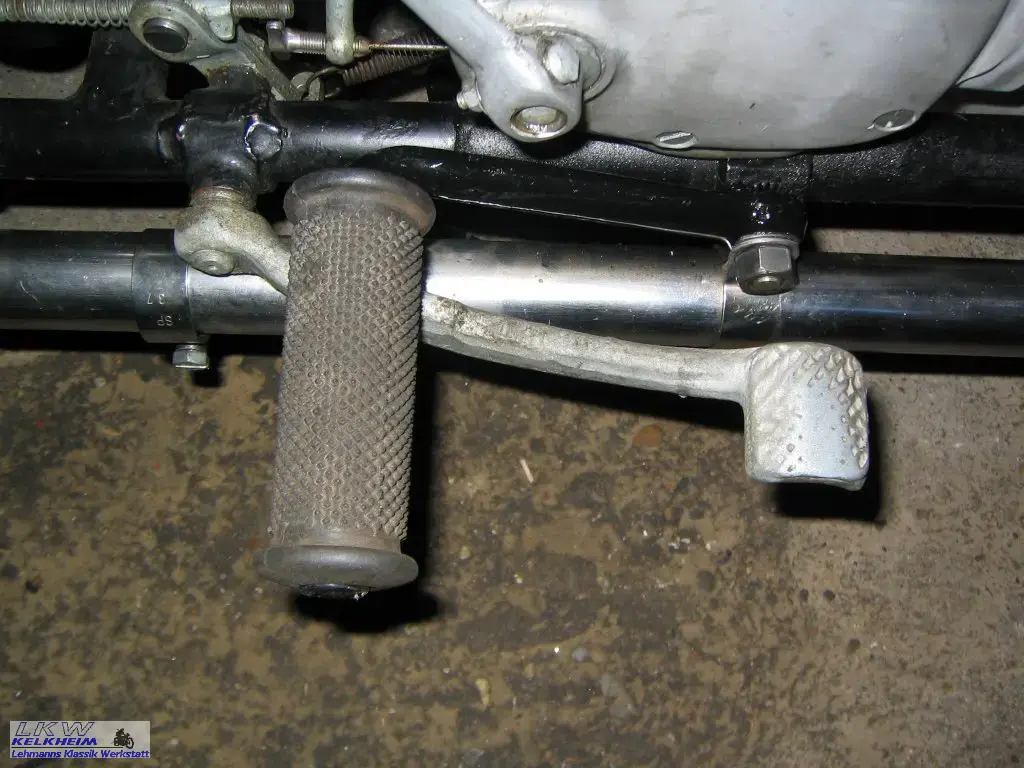 Irgendwie sieht die rechte Fußraste mit dem Bremshebel nicht richtig aus. Entweder ist der Bremshebel oder die Fußraste zu kurz.