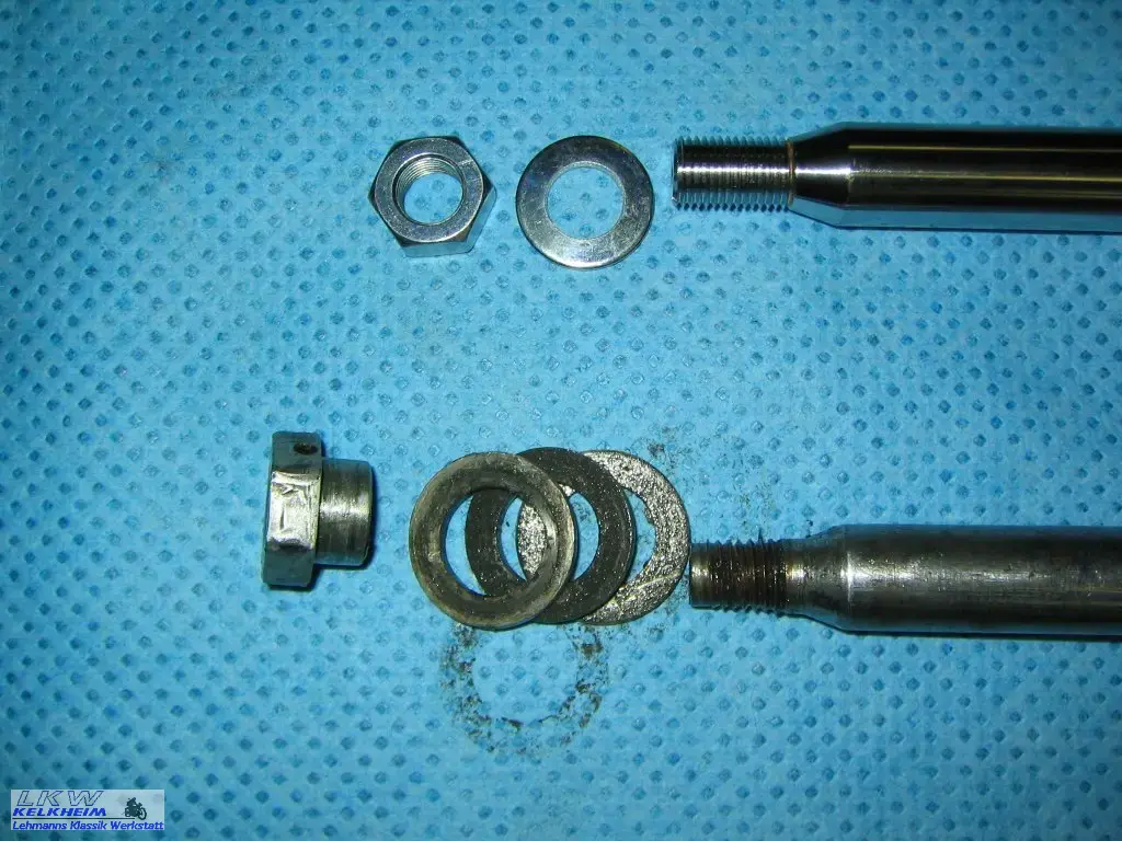 Ich habe mir mal eine neue Achse mit Mutter bei Ulis gekauft - ist sicherer.