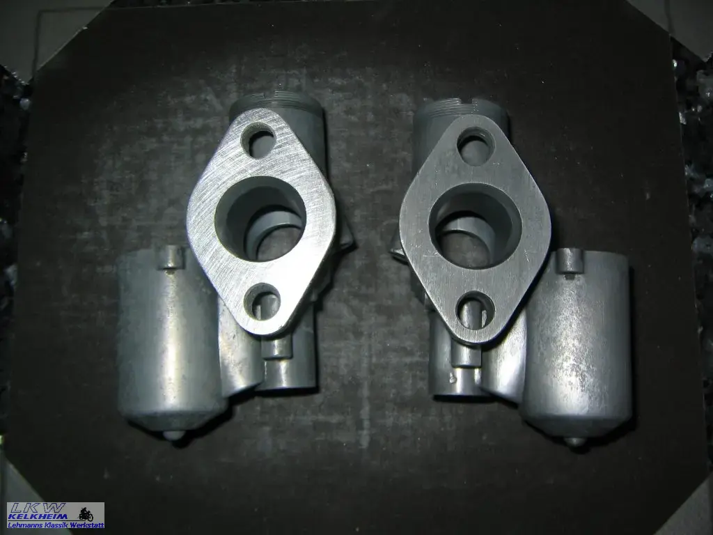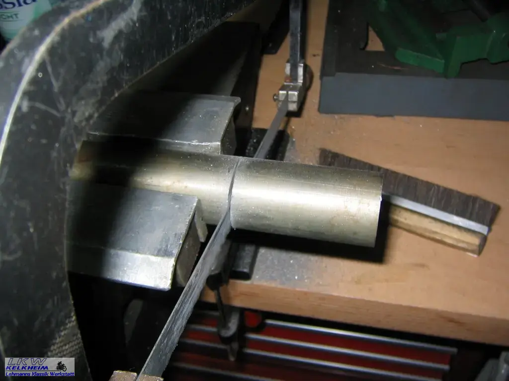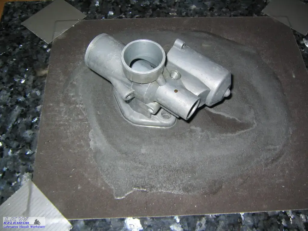 Die Kontrolle mit dem Haarlineal ergab an beiden Vergasern eine leichte Verformung des Anschlussflansches. Da die Verformung jeweils gering war, wurde auf die Drehmaschine verzichtet und die Flansche mit 240er-Schleifpapier plan geschliffen.