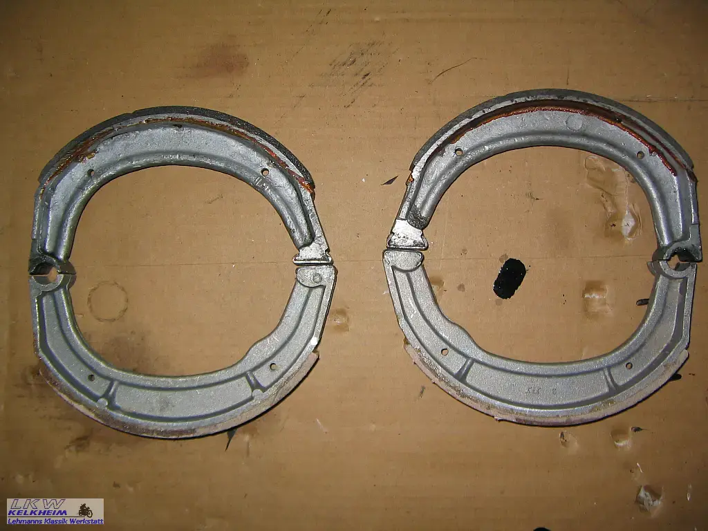 Ein neuer Satz Bremsbacken zeigte, dass die alten Bremsbacken stark verschlissen waren.