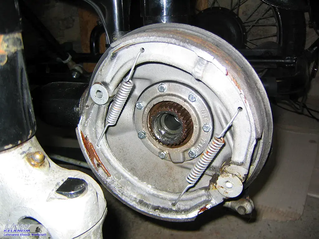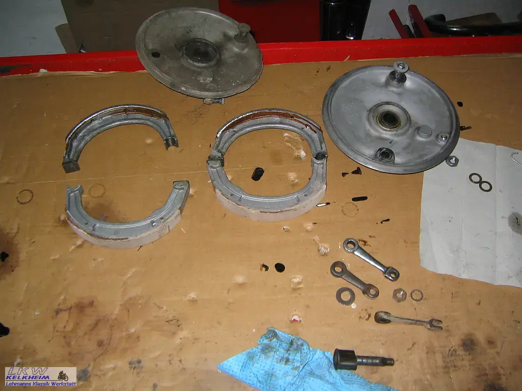 Daraufhin habe ich auch die hintere Bremse zerlegt und die gleichen verschlissenen Bremsbacken gefunden. Diese wurde auf die gleiche Weise überholt.
