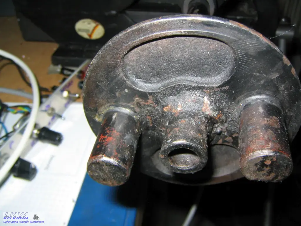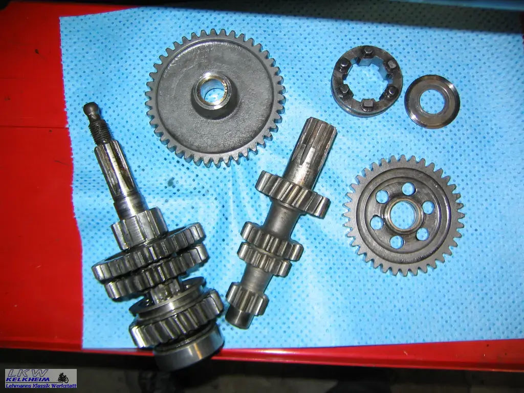 Da es bei der ersten Fahrt beim Einlegen des vierten Ganges sehr ruckelte, habe ich das Getriebe ausgebaut und zur Überholung gegeben. Es kam mit dem Hinweis zurück, dass sich die Getriebewellen und Zahnräder deutlich von den Nachkriegsgetrieben unterschieden und es mangels Ersatzteilen nicht 100 % perfekt repariert werden konnte.