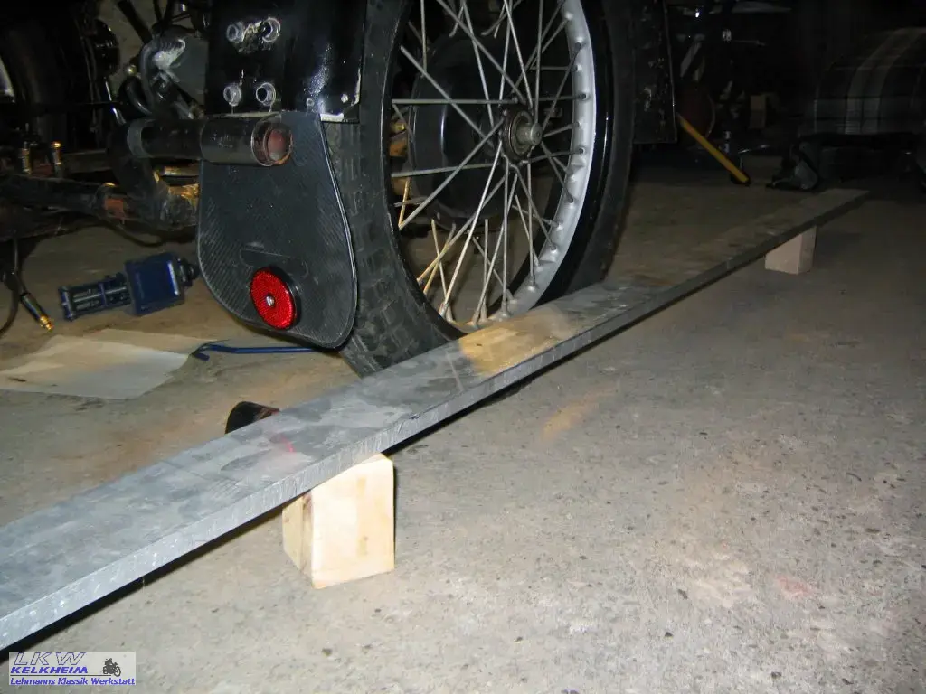 Die Einstellung des Seitenwagens stand auf der Liste der grundlegenden Arbeiten an Karla. Nachdem der TÜV-Prüfer, ein erfahrener Gespannfahrer, das schlechte Fahrverhalten und die negative Vorspur bemerkte, wurde die Priorität noch erhöht.