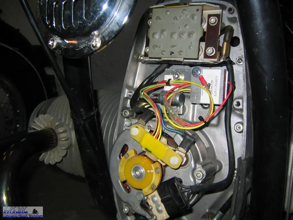 Die elektrische Auslegung der /5-Modelle war schon immer etwas grenzwertig. Ein Autostarter (Opel B Kadett) mit 180 Watt Lichtmaschine und zu kleiner Batterie funktionierte nicht wirklich gut. Ich erinnere mich schmerzlich an das Klacken des Anlassers und die anschließenden Kickstarterorgien. Selbst zum Zünden war die Batteriespannung zu gering. Das führte dazu, dass ich damals nach dem ersten erfolglosen Startversuch immer den Kickstarter benutzte.