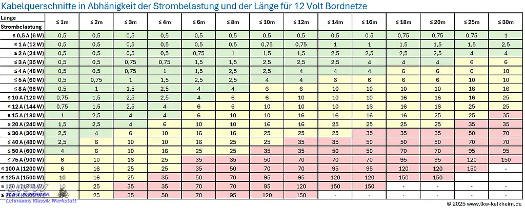 Tabelle für 12 V Bordnetze (bitte anklicken)