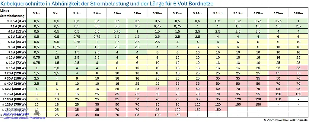 Tabelle für 6 V Bordnetze (bitte anklicken)