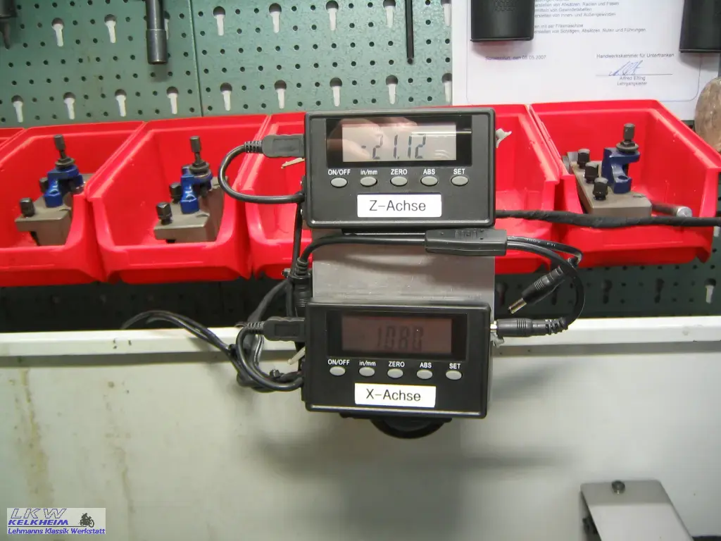 Messlineale mit Digitalanzeige sind vor allem dann von Vorteil, wenn nur gelegentlich an der Drehmaschine gearbeitet wird. Das Nullstellen ist einfach und die Verdoppelung beim Zustellen in der x-Achse machen gute Digitalanzeigen automatisch.