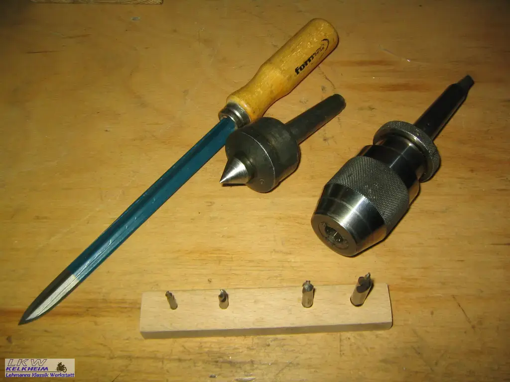 - Mitlaufende Körner-Spitze und Bohrfutter für den Reitstock