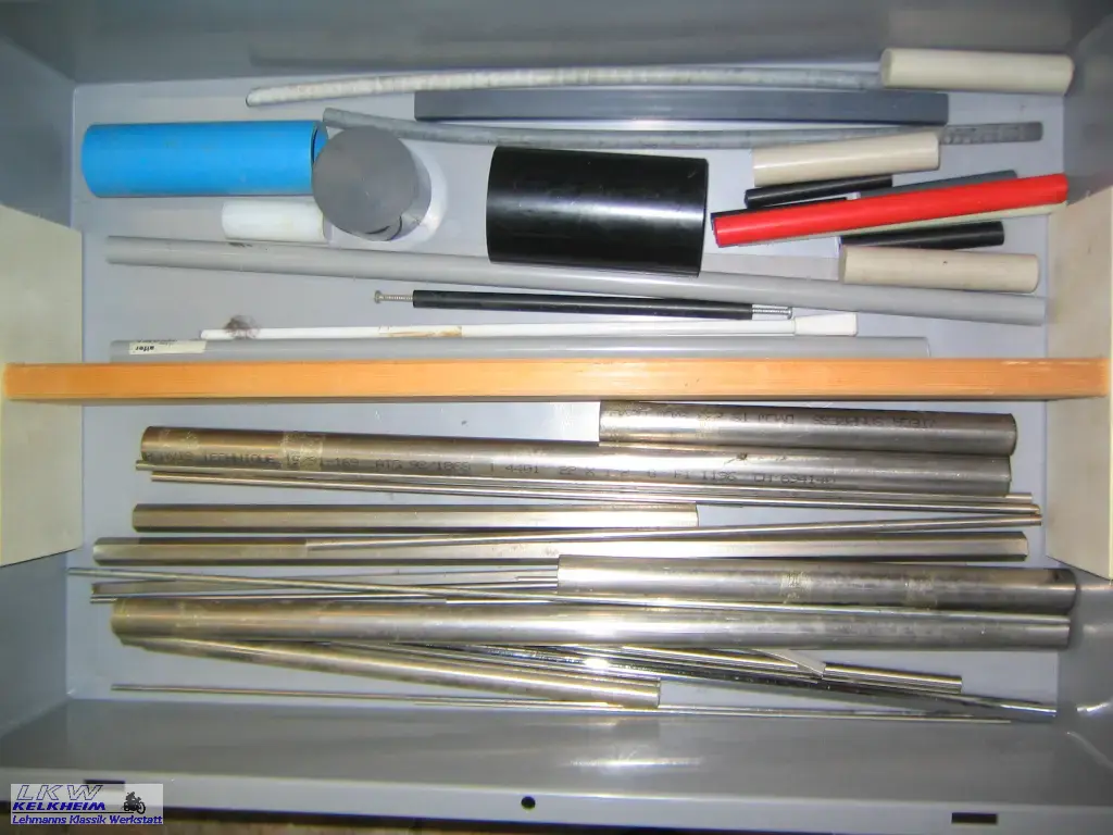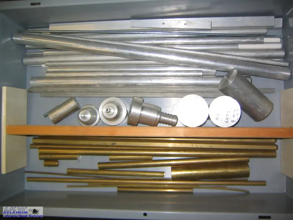 Neben diversen Messwerkzeugen wie Messschieber (digital oder mit Uhr), Gewinde- und Radienlehre benötigt man ein Tabellenbuch Metall und eine gute Werkstattausrüstung.